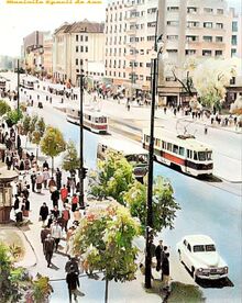 In 1940 poarta numele de Bd. Ionel I. C. Bratianu de la Universitate pana la Str. Lipscani, iar de aici pana la Piata Mare se numeste Bd. Constantin Brancoveanu.[4]