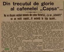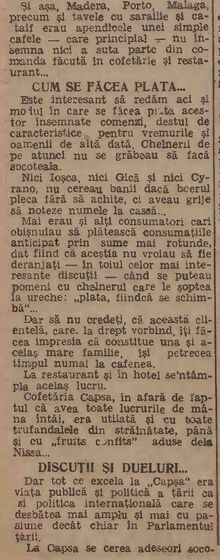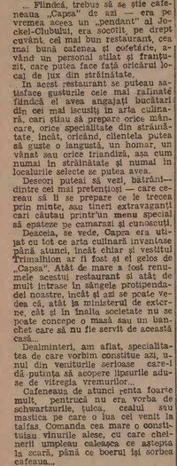 Scriitorul Mircea Damian care era frecvent prezent la Capsa a lasat cateva insemnari interesante despre local: