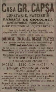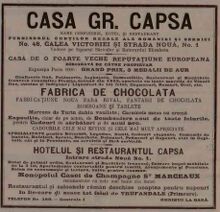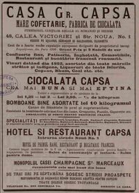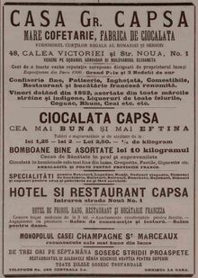 In iunie 1931 "CAPSA" Societate anönimä romanä pe actiuni, pentru fabricarea ciocolatei si a bonboanelor, isi avea sediul in Bucuresti, Soseaua Viilor Nr. 44--48. [4]