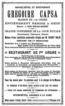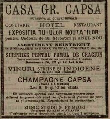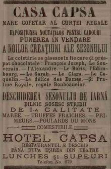 Grigore Capsa isi intinde afacerea care pe langa cofetaria cu patiserie fina, Inghetata, bucatarie, etc. dobandeste in timp un restaurant si un hotel.