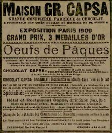 Grigore Capsa continua cu tardita de cofetar si in 1875,obtine brevetul de furnizoral Curtii princiare sarbesti si tot in acel an concureaza la expozitia internationala din Paris unde obtine marea medalie de aur.