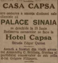 La inceput de secol XX exista o sucursala a casei capsa in Sinaia. Tot aii functiona un restaurant si un hotel