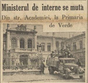 Aprilie 1938. Ministerul se muta in cladirea Primariei de verde