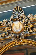 Deasupra oglinzii se distinge si astazi, prin gingasia executiei artistice, medalionul sculptat in lemn al Irinei Sutu, sotia proprietarului.