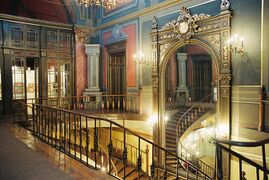Inspirata rezolvare a holului central, infaptuita in 1862, se datoreaza lui Karl Storck, recunoscut sculptor si artist decorator. Transformarile initiate de el constau in deschiderea a trei arcade, din crearea unei scari monumentale desfacuta in doua brate si din montarea in peretele din fata, a oglinzii adusa de la Murano si prinsa intr-un frumos ancadrament.