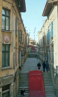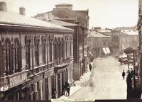 1859 Foto: Moritz Benedict Baer, Vedere din Pasajul Român spre Biserica Sf. Ionică(dreapta). -