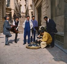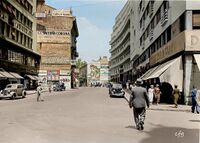 Pasajul Român din București, surprins în anul 1946 de către Jim Pringle, fotograf Associated Press. Plin de viață și de magazine, acesta făcea legătura între Calea Victoriei și strada Ion Câmpineanu. In imagine stanga sus, blocul din Strada Ion Câmpineanu 21, Anul finalizării: 1945-1946