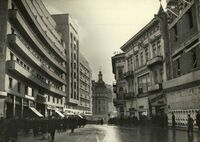 1938 Calea Victoriei, privind spre nord. Pe stanga se poate vedea intrarea in Pasajul Roman -