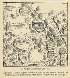 1856 Plan der Stadt Bukurest. Pasajul este in constructive. Se vad doua cladiri noi. -