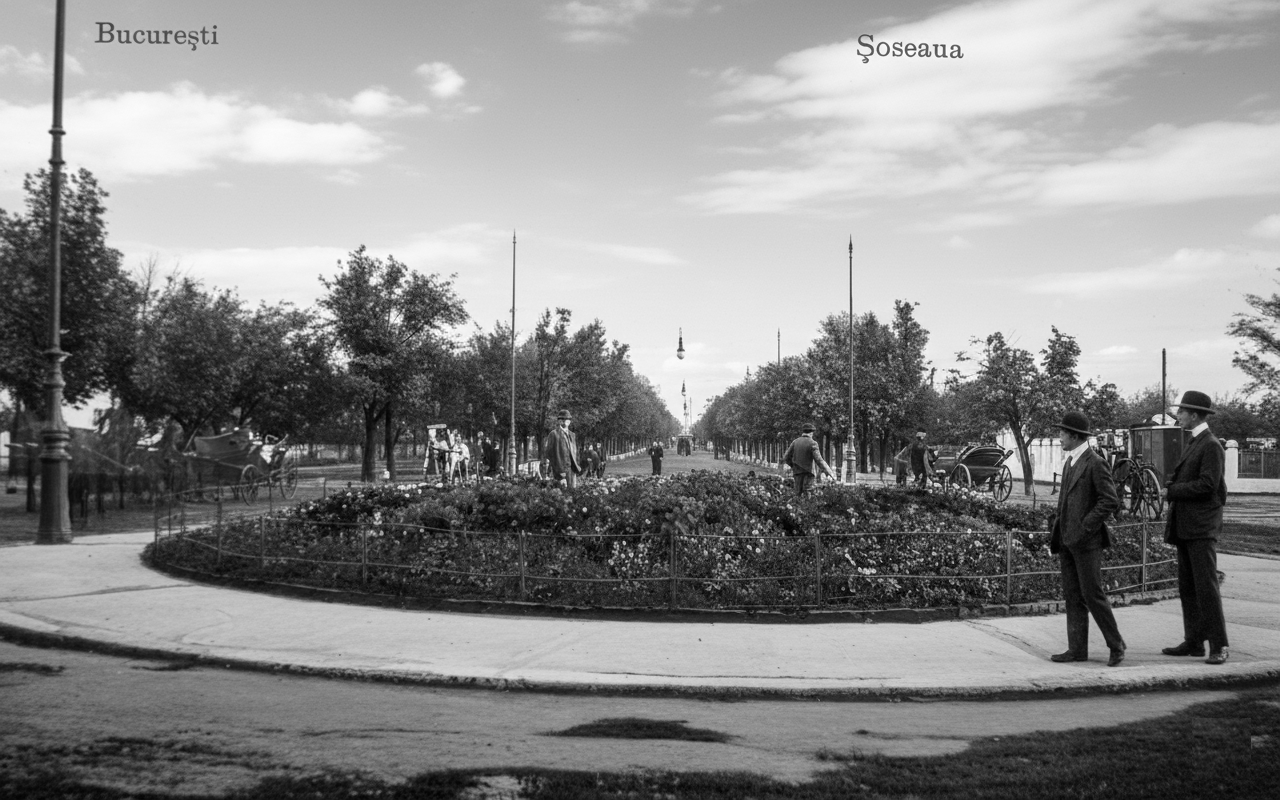 1910, Soseaua KISELEFF, Rondul cu flori bw.png
