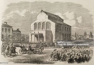 heatre Square, the Revolution at Bucharest, Romania, illustration from the magazine The Illustrated London News, volume XLVIII, March 10, 1866